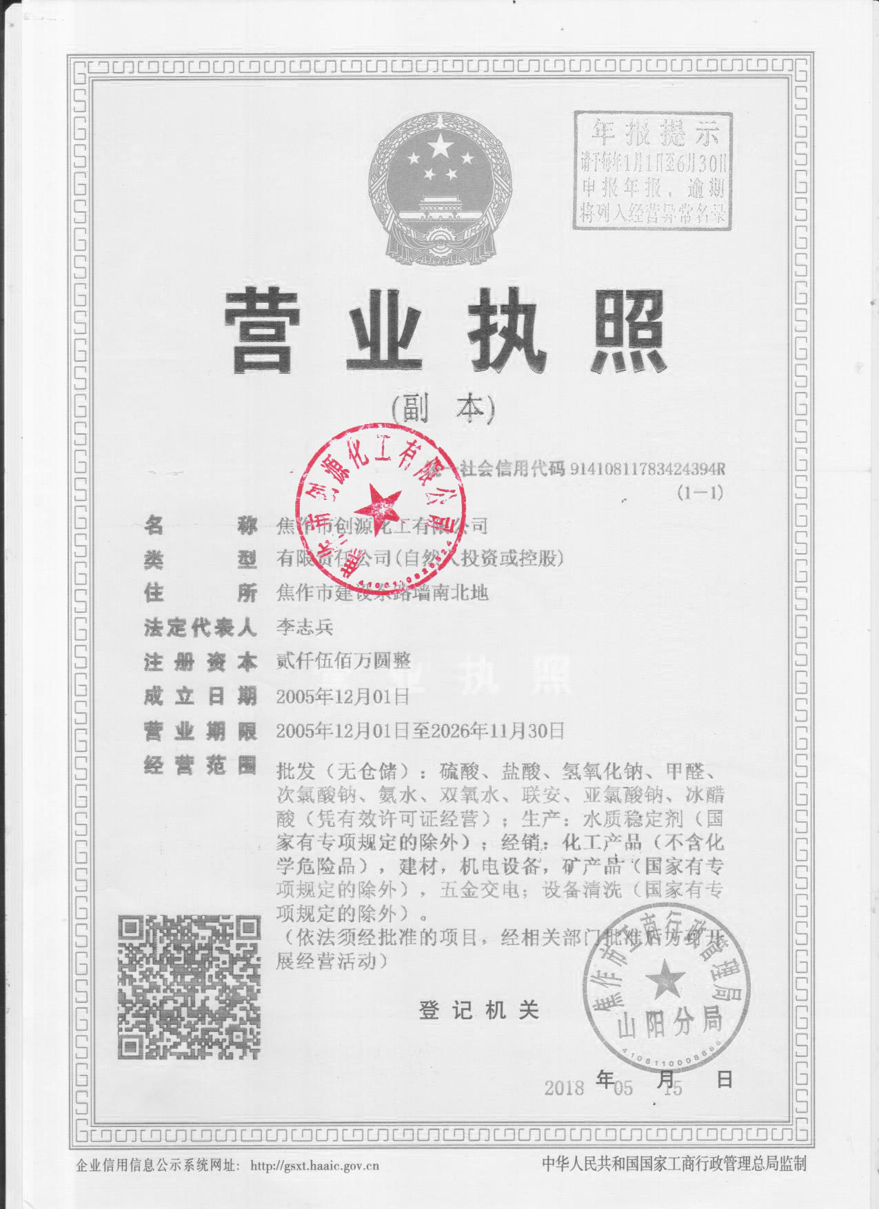 2017 焦作市創(chuàng)源化工有限公司